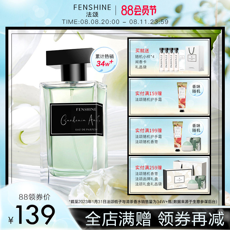 券 80元销量1000法颂栀子与清茶自然栀子花香水礼盒女士淡香清新茶香氛送女友礼物