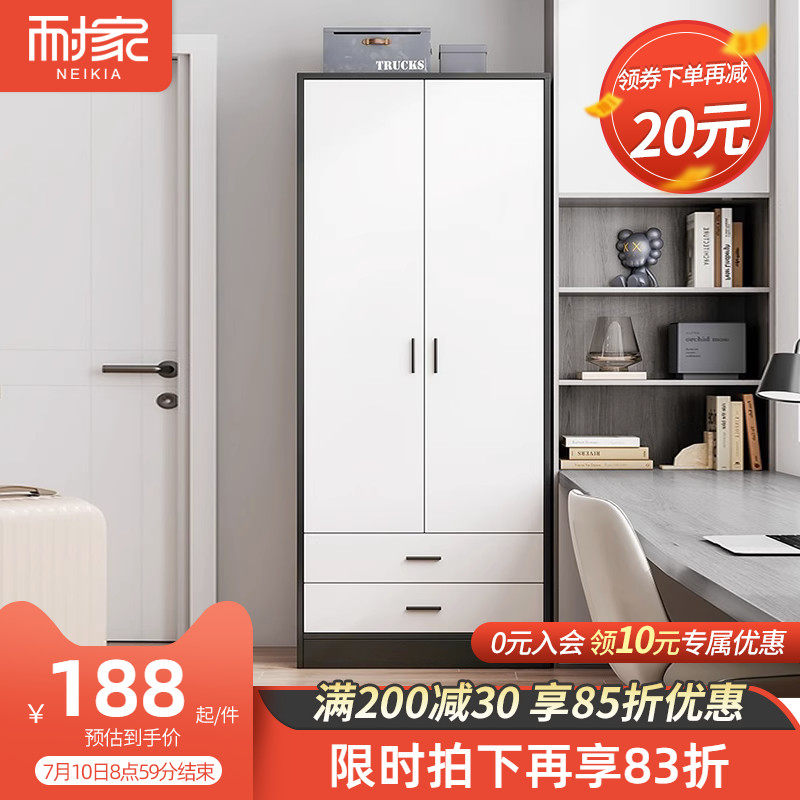 券 20元销量200小衣柜家用卧室小户型衣柜收纳柜子出租房用木质简易儿童两门衣橱