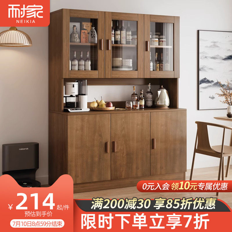 券 30元销量100酒柜餐边柜子现代简约实木色客厅靠墙家用厨房碗柜储物柜玻璃橱柜