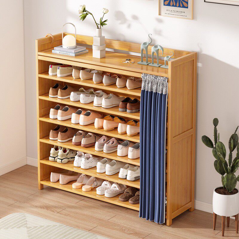券 10元销量300鞋架子家用门口简易室内多层出租屋用楠竹实木带帘防尘大容量鞋柜