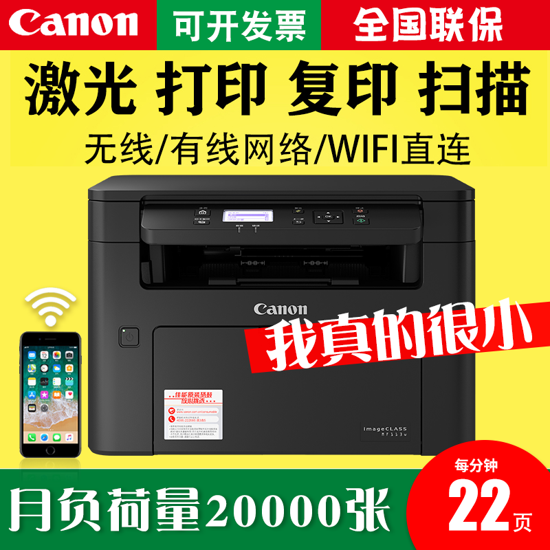 券 100元销量5佳能MF113w打印机复印扫描一体机多功能三合一A4黑白激光手机无线wifi小型家用学生办公商用复印证件优MF112