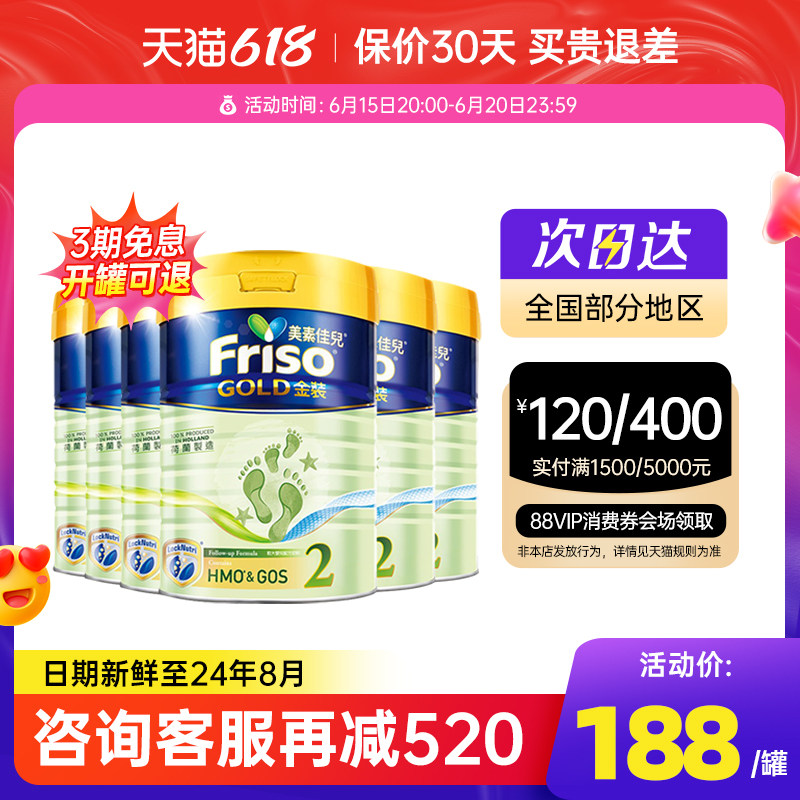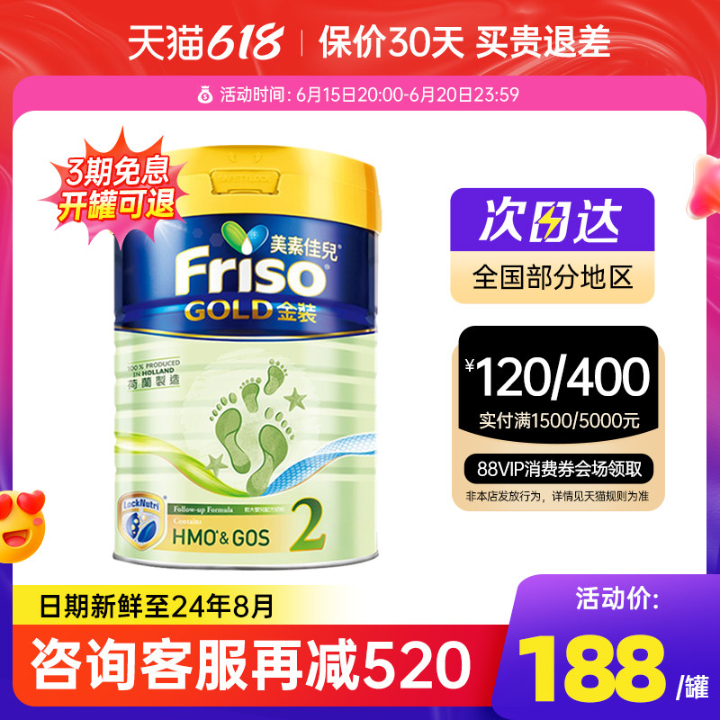 券 512元销量6Friso港版美素佳儿金装2段婴幼儿荷兰进口配方牛奶粉900g*6罐装