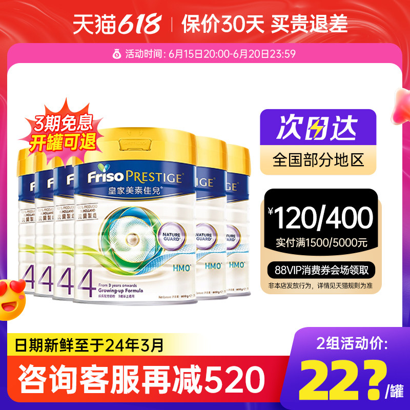 券 50元销量4Friso港版皇家美素佳儿4段婴幼儿HMO成长配方牛奶粉3-6岁800g*6罐