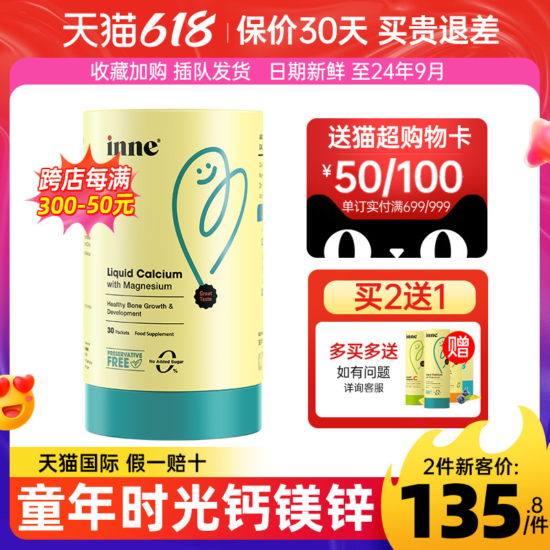 券 20元销量4inne童年时光钙镁锌小金条婴幼儿宝宝补钙液体乳钙营养钙铁锌官方