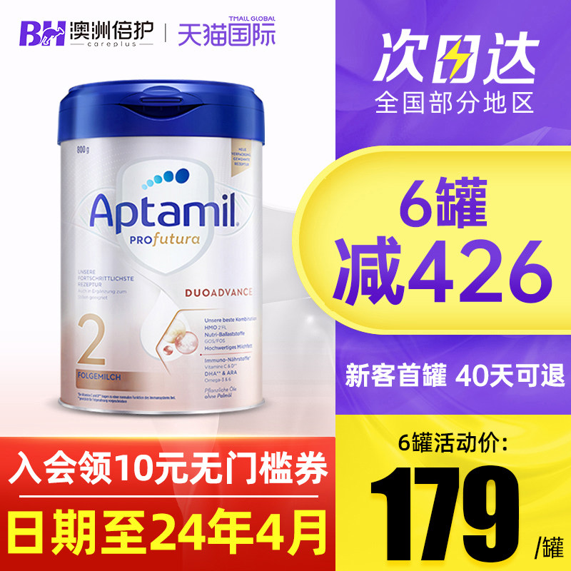 券 10元销量100德国爱他美2段白金版二段婴幼儿HMO配方牛奶粉旗舰店可购1+段800g