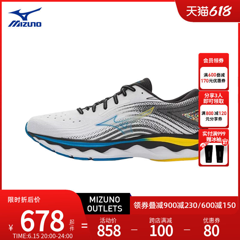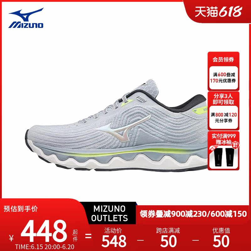 券 60元销量12Mizuno美津浓男女款春夏回弹科技轻量跑步鞋WAVE HORIZON6