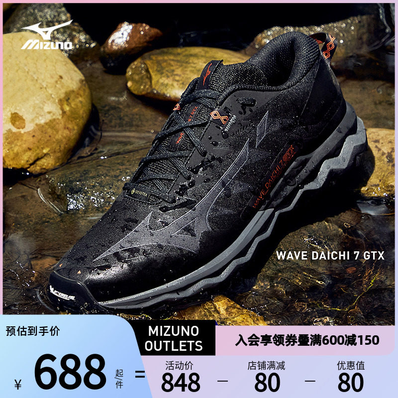 券 80元销量4Mizuno美津浓男女春夏缓震透气越野跑步鞋WAVE DAICHI7 GTX