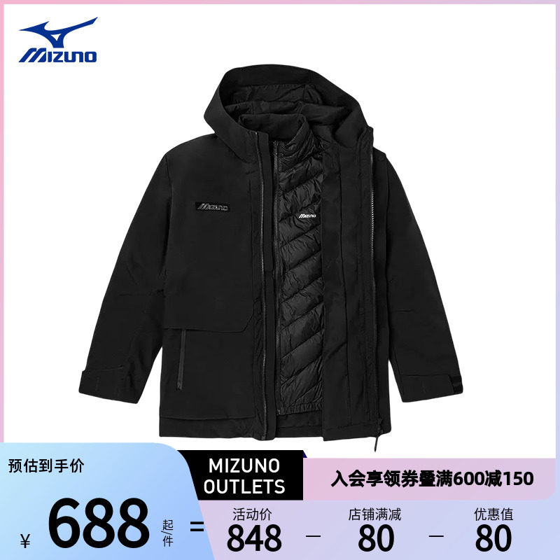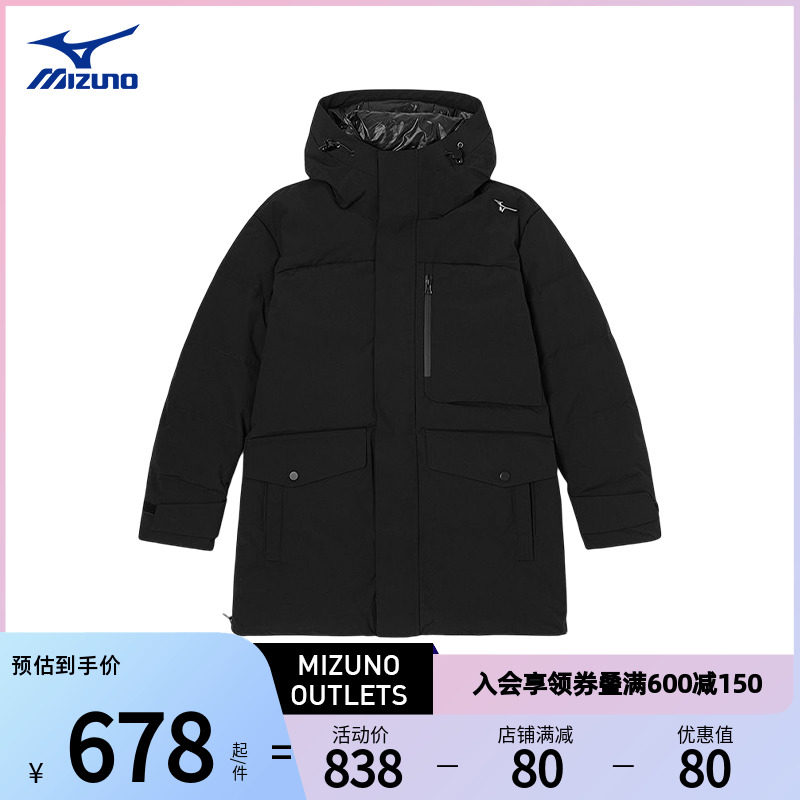 券 80元销量6Mizuno美津浓男秋冬中长款外套防风连帽保温御寒多口袋羽绒服