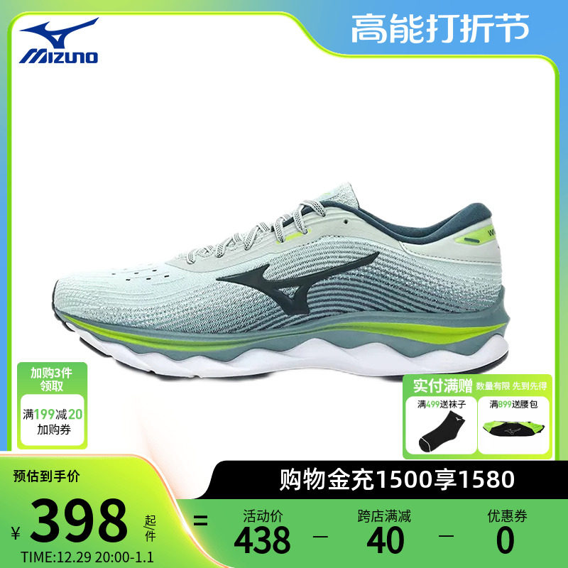 券 310元销量10Mizuno美津浓男女早秋网面耐磨回弹轻便跑步鞋WAVE SKY5