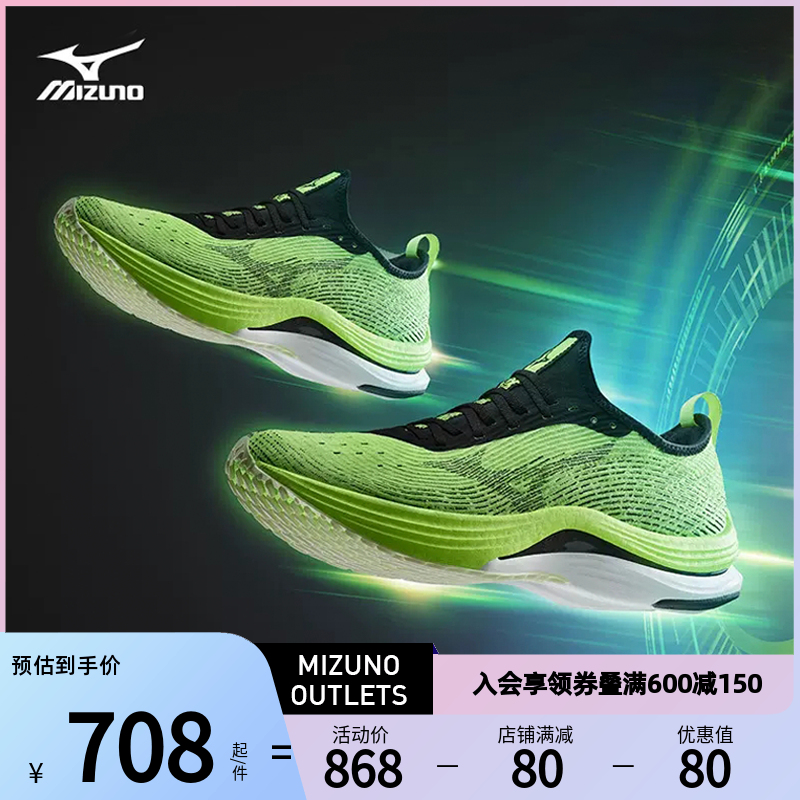 券 80元销量7Mizuno美津浓男女透气鞋面防滑竞速跑步鞋WAVE AERO 20 +R