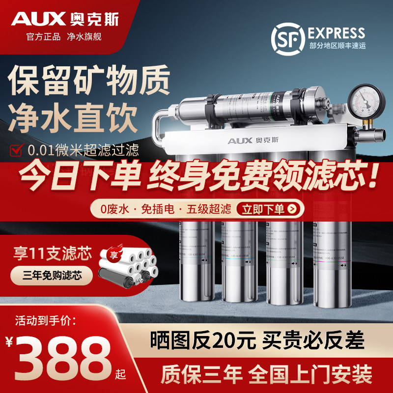 奥克斯净水器家用直饮商用自来水龙头超滤净化过滤厨下净水机前置