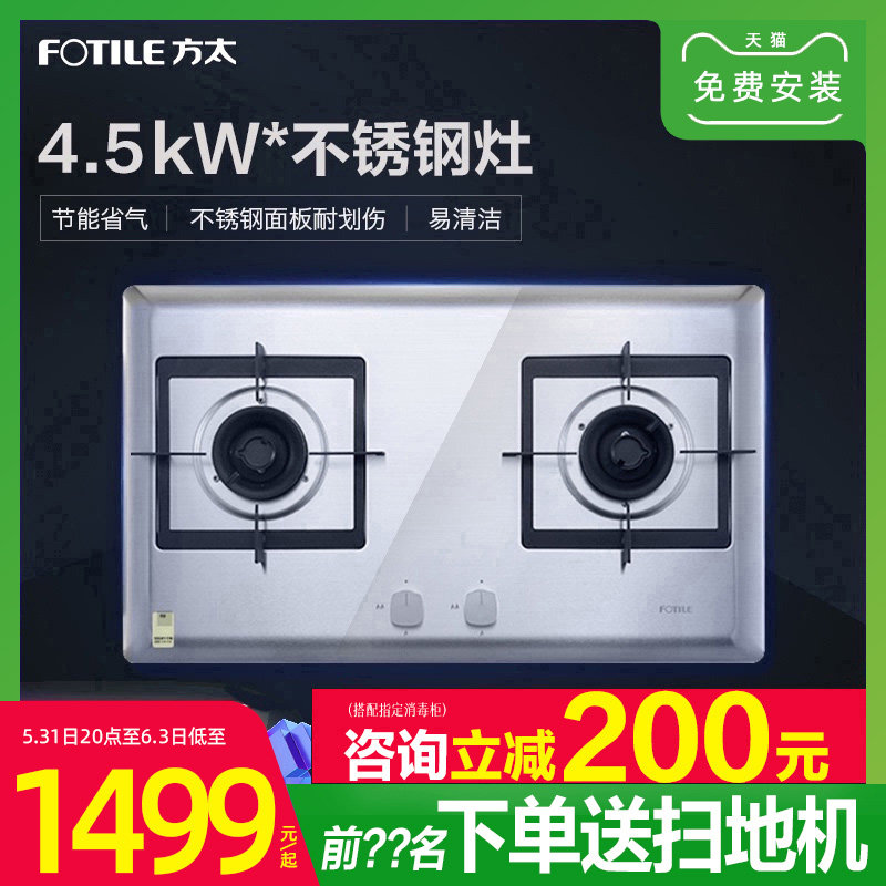 券 700元销量0方太TH33G不锈钢燃气灶家用煤气双灶嵌入式天然气液化气灶具台式