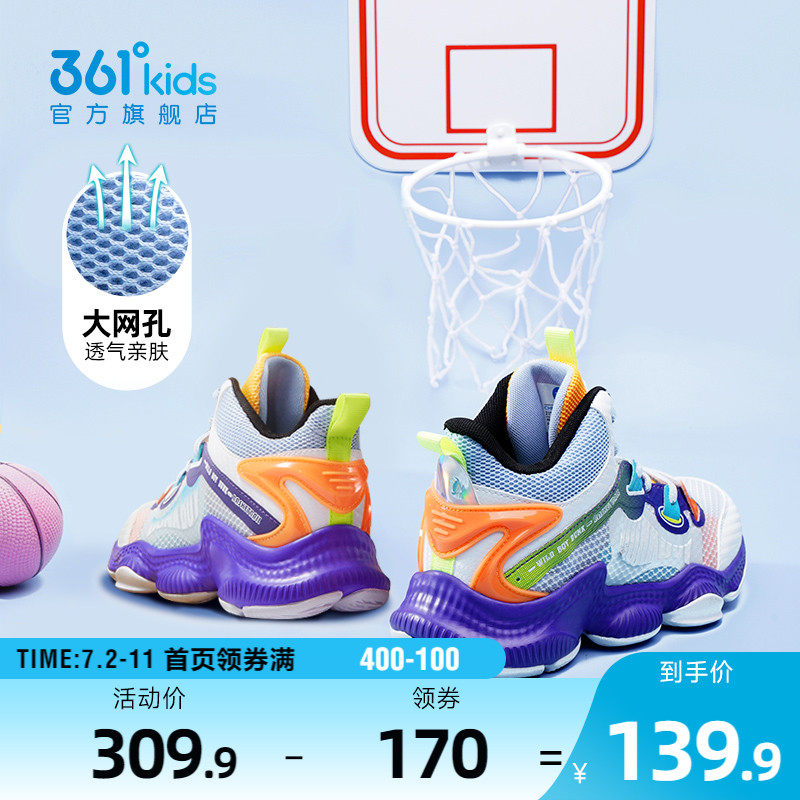券 170元销量1000361童鞋儿童篮球鞋2023夏季网面球鞋大童学生透气鞋子男童运动鞋