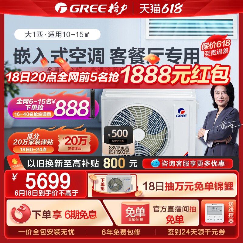 券 120元销量4Gree/格力中央空调家用客厅风管机一级大1匹一拖一冷暖变频C3+