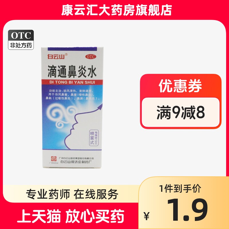 券 8元销量10白云山 滴通鼻炎水 15ml伤风鼻塞鼻窒慢性鼻炎过敏性鼻炎鼻窦炎