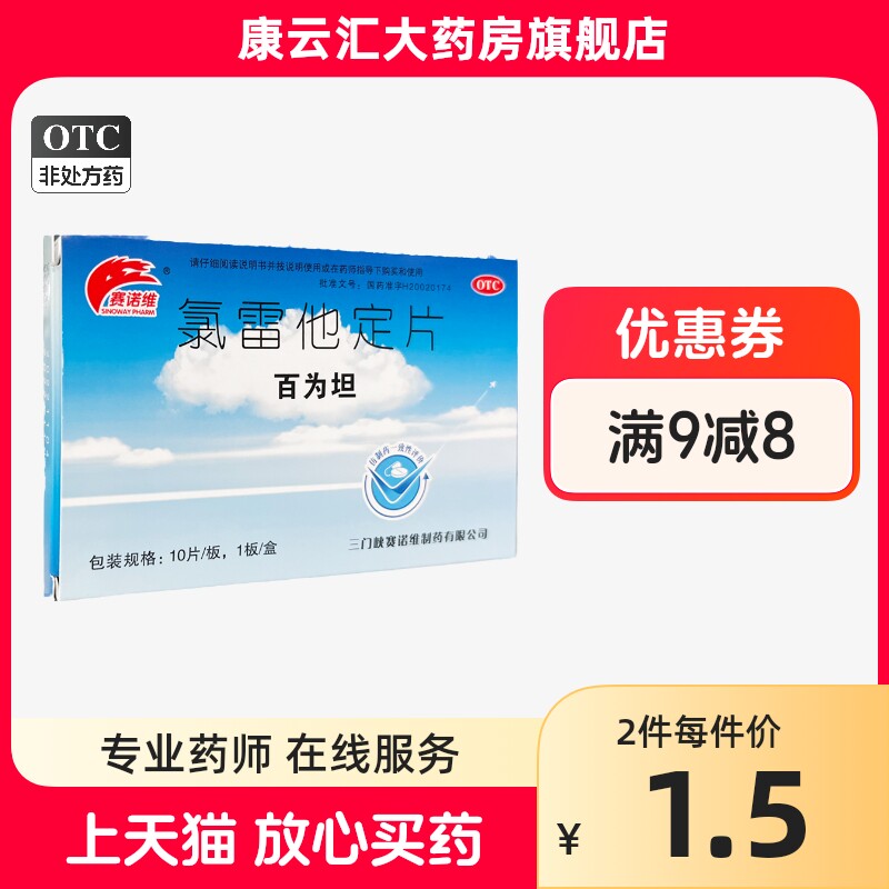 券 5元销量5赛诺维百为坦氯雷他定片鼻炎10片缓解过敏性鼻炎喷嚏流涕鼻痒鼻塞