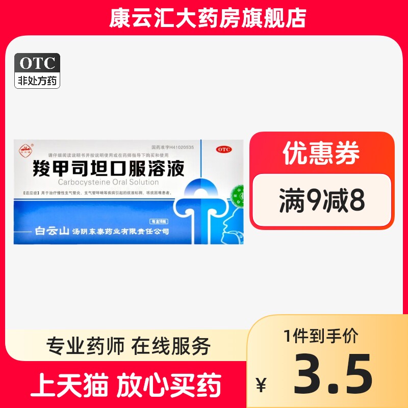 券 8元销量0白云峰羧甲司坦口服溶液10支慢性支气管炎 支气管哮喘
