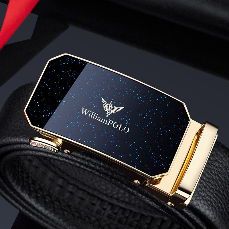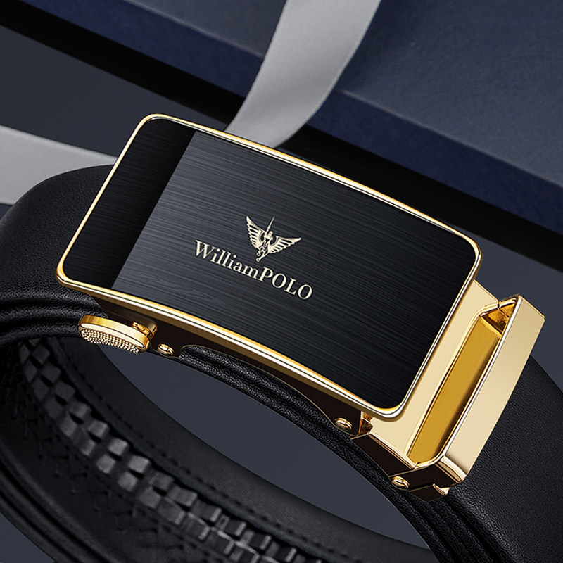 券 5元销量100保罗男士皮带纯牛皮2023新款年轻人商务真皮自动扣腰带潮品牌裤带