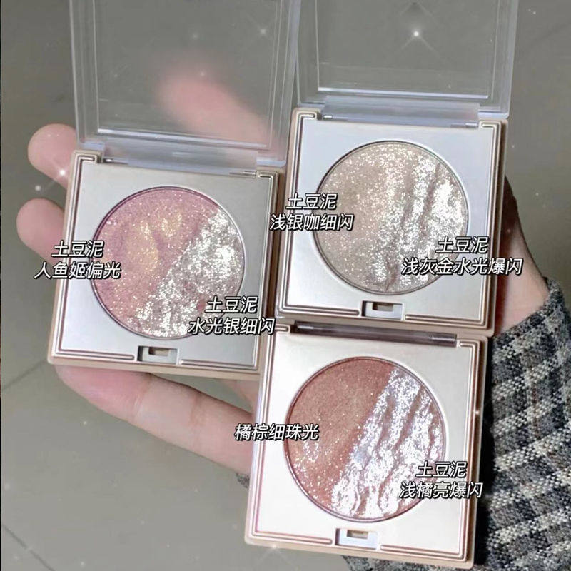 券 1元销量50美出银河系~湿漉漉水光大师高光修容腮红闪粉三色一体盘学生眼影