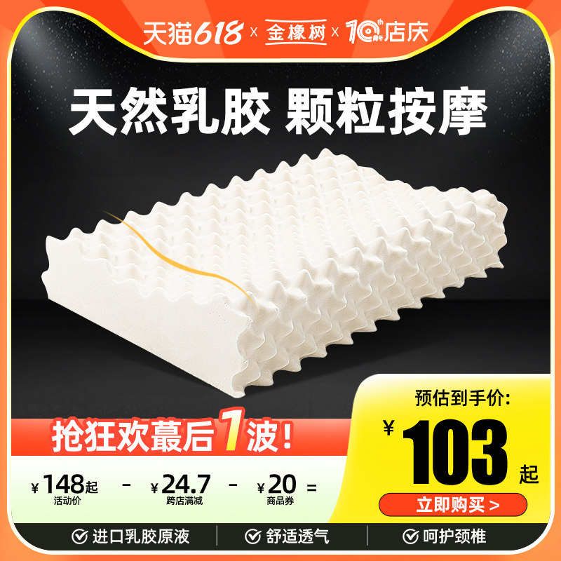 券 60元销量50金橡树泰国天然乳胶枕头枕芯正品双人枕加长橡胶颈椎枕护颈枕按摩