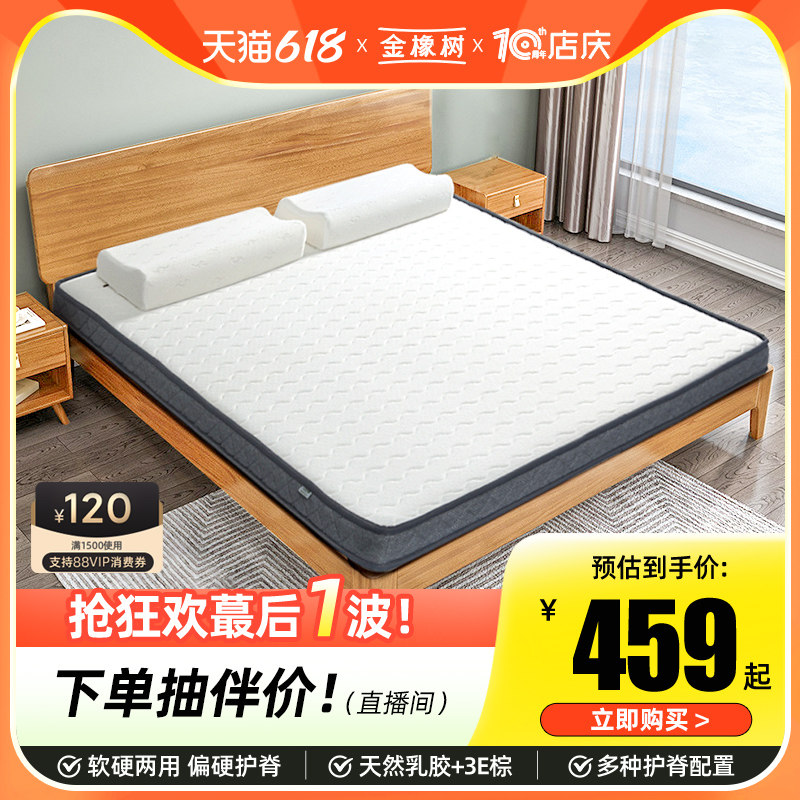 券 50元销量500金橡树 椰棕床垫硬垫护脊儿童乳胶床垫 单人宿舍1.2米薄床垫 硬糖