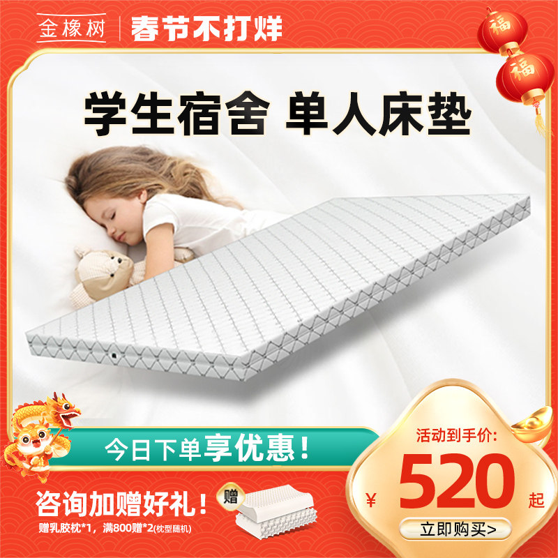 券 30元销量67金橡树泰国天然乳胶学生宿舍床垫床褥0.9m/90cm单人儿童定制YOUNG