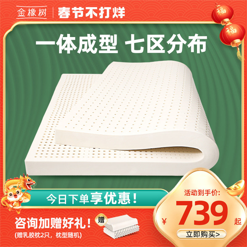 券 80元销量15金橡树泰国原产进口天然乳胶床垫1.8m床1.5米护脊5cm10cm泰享plus