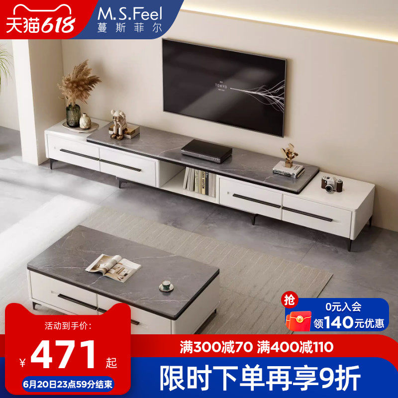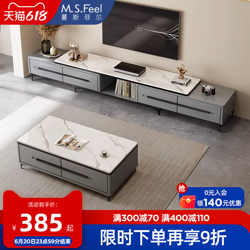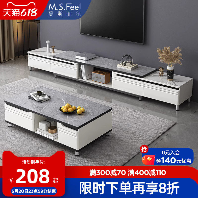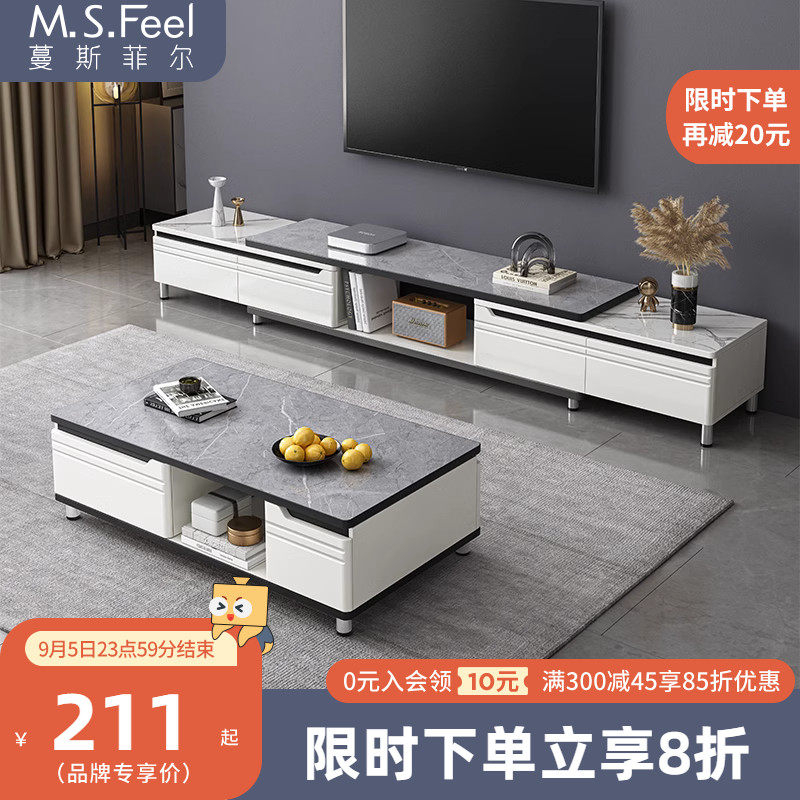 券 20元销量84电视柜茶几组合简约现代小户型客厅岩板电视机柜轻奢可伸缩落地柜