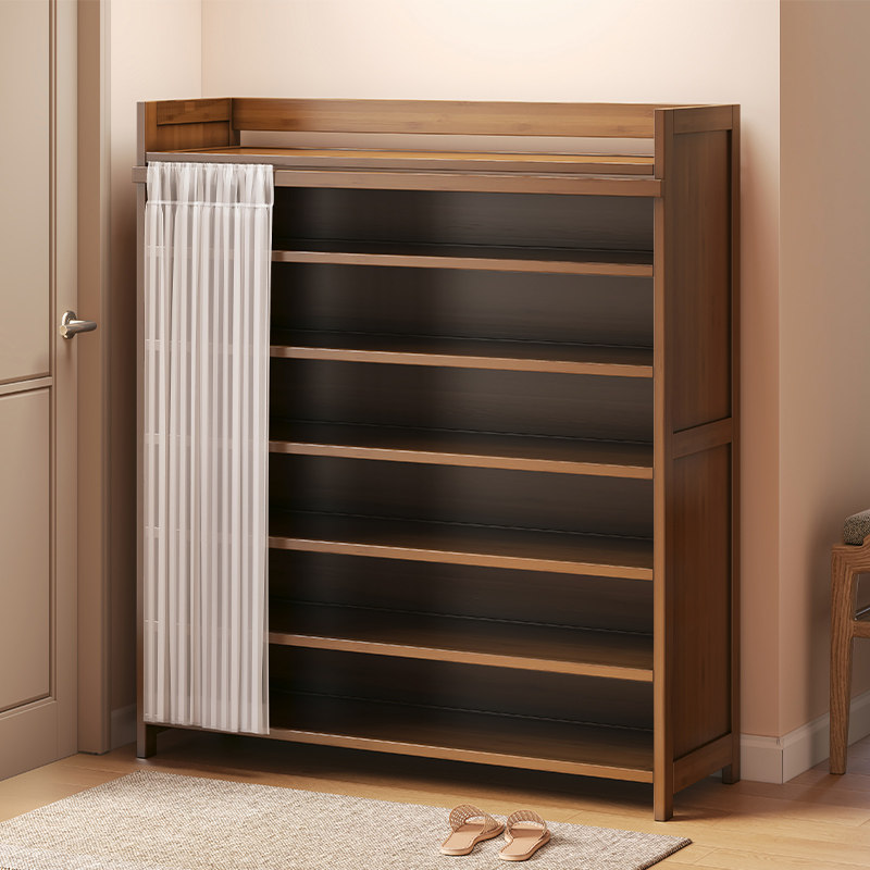券 5元销量3000楠竹鞋架家用门口简易分层隔板收纳神器省空间防尘布帘大容量鞋柜