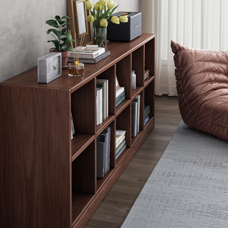 券 10元销量100实木矮书柜客厅置物架落地美式胡桃木格子柜收纳储物柜家用书架