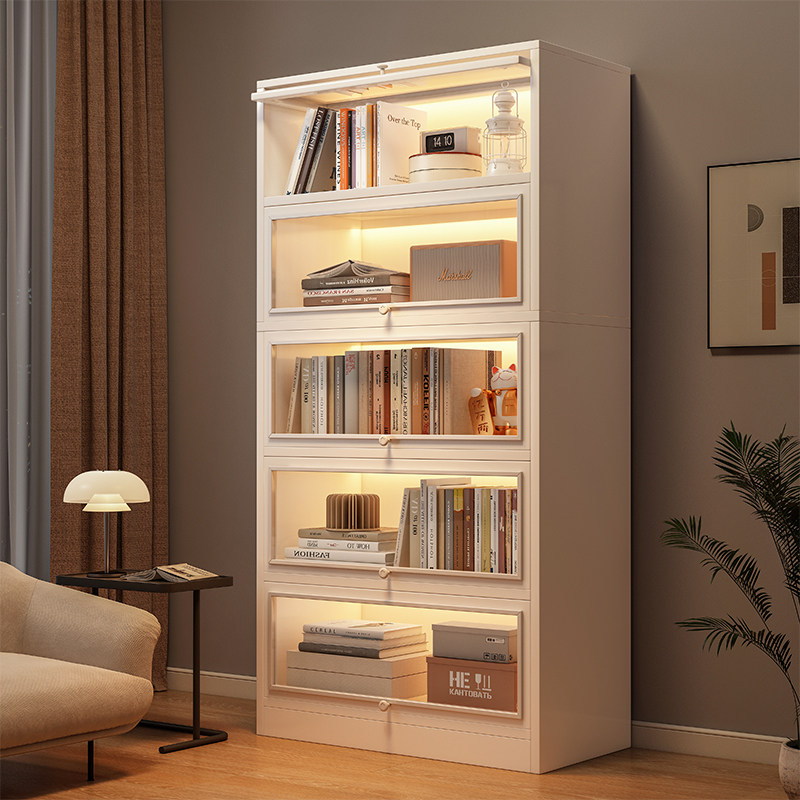 券 30元销量300书架落地客厅防尘仿玻璃门置物架展示柜家用储物收纳柜子学生书柜
