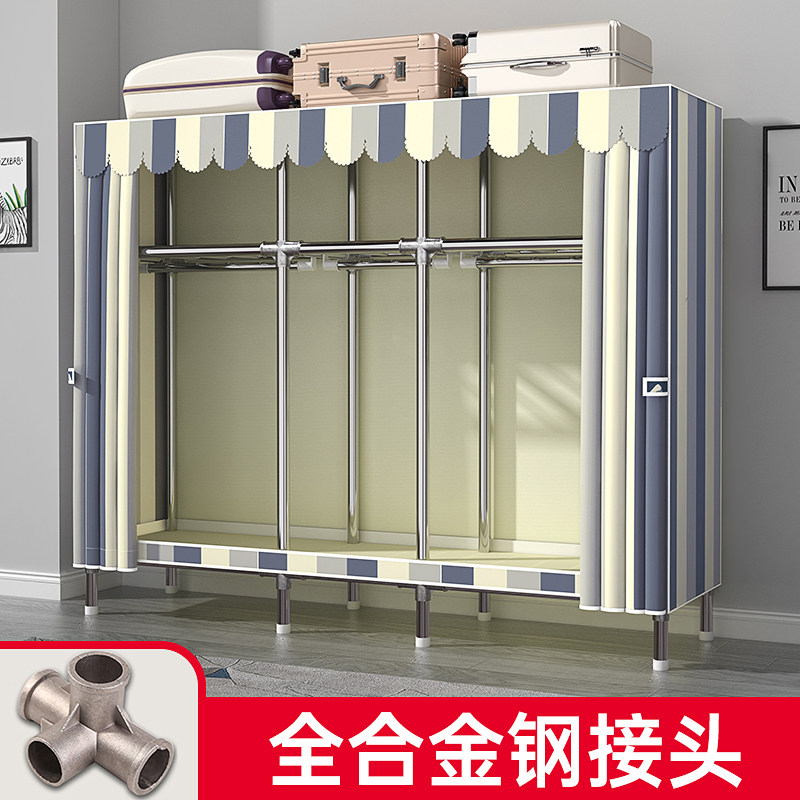 券 10元销量500简易衣柜家用卧室组装布衣柜简约出租房用钢管加粗加固衣橱收纳柜