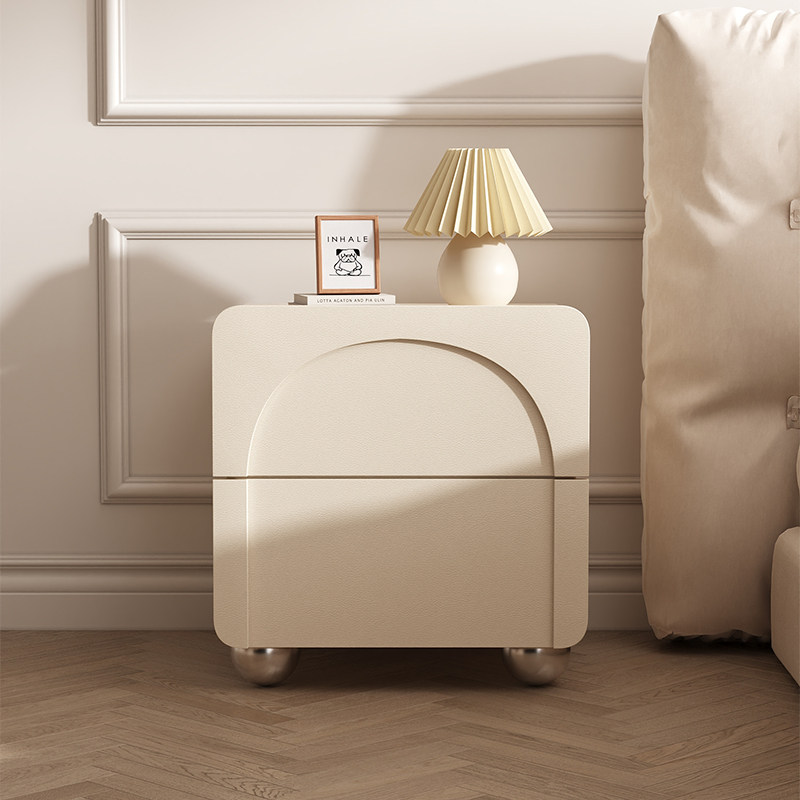 券 20元销量100奶油风床头柜现代简约皮质轻奢高级感网红创意白色卧室实木床边柜