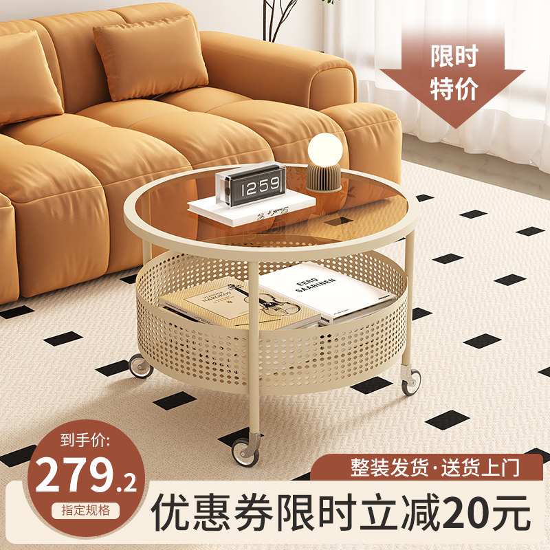 券 20元销量100奶油风可移动茶几客厅家用小户型简约现代简易法式2023新款圆桌