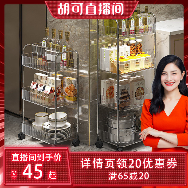 券 20元销量100【胡可直播间】小推车置物架厨房落地零食移动浴室卫生间收纳储物