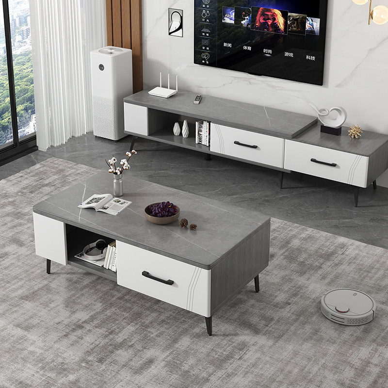 券 200元销量100轻奢岩板茶几电视柜组合一体可伸缩现代简约小户型北欧家用客厅桌