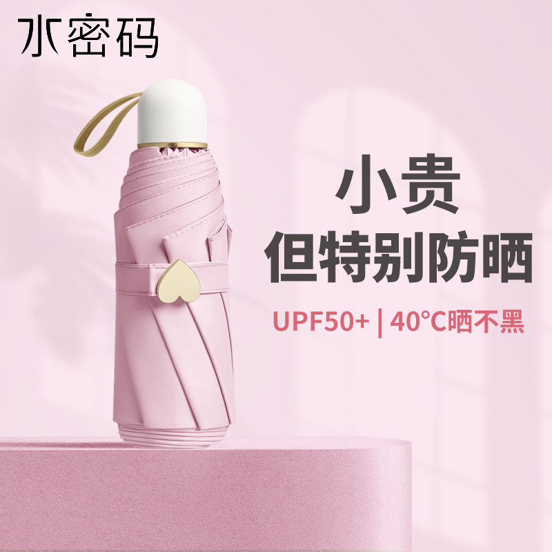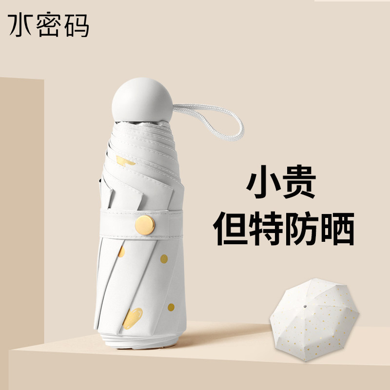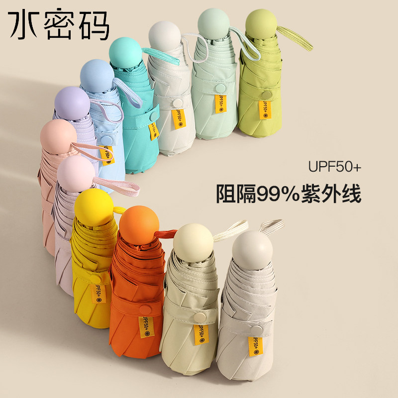 水密码五折伞遮阳伞防紫外线女防晒伞太阳伞黑胶晴雨伞口袋胶囊伞