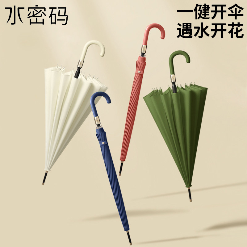 券 20元销量0水密码日系16骨自动长柄雨伞ins风女大号抗暴雨专用伞双人弯钩伞