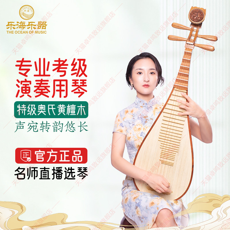 乐海 琵琶乐器特级奥氏黄檀木专业考级演奏级酸枝木琵琶琴DJ14-AA