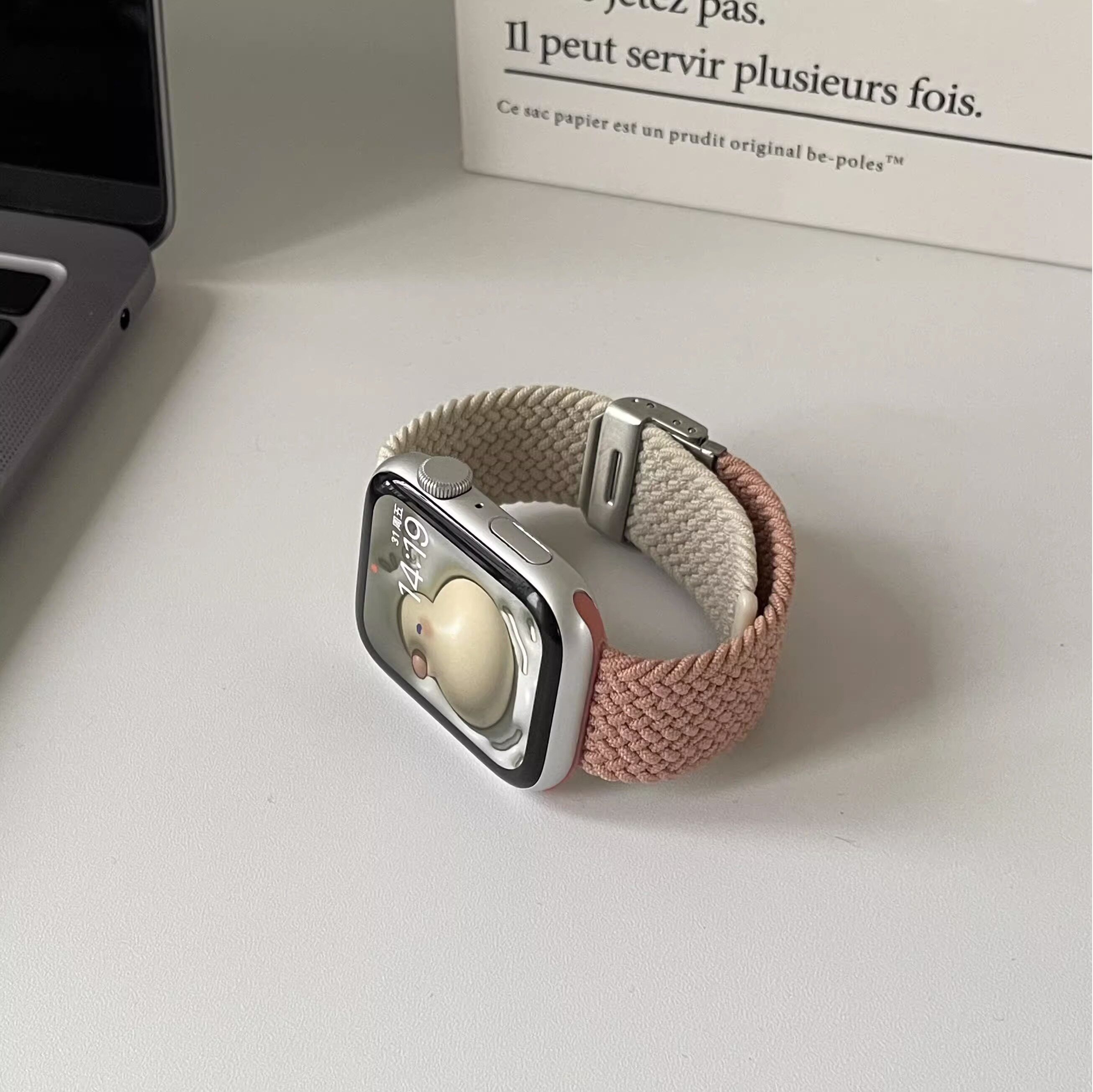 券 3元销量300适用iwatch8表带S7苹果手表S8尼龙Applewatch7弹力编织SE新款拼色S6夏6高级5小众4代男女45mm运动41透气智能