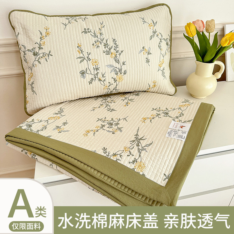 券 10元销量10000A类水洗棉麻双层纱床盖单件2023新款四季通用防滑夹棉床单三件套
