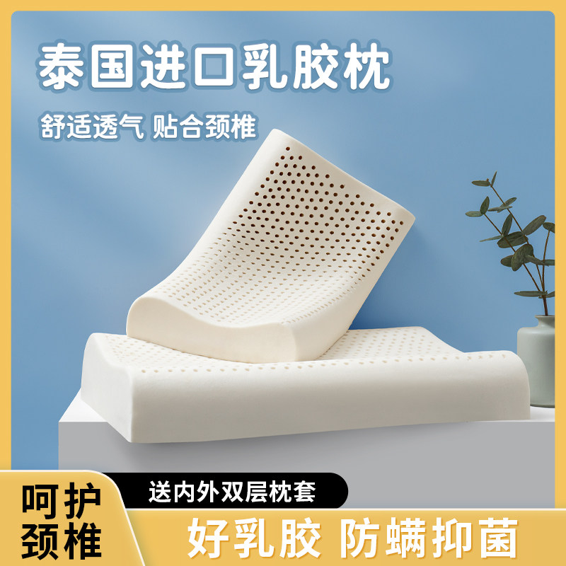 券 20元销量10泰国乳胶枕头一对家用天然橡胶枕头芯记忆成人护颈椎助睡眠硅胶低