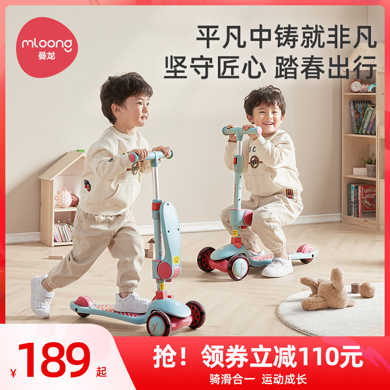 券 20元销量200曼龙儿童滑板车宝宝滑滑车1-3-6岁12男女童可坐可骑二合一溜溜车
