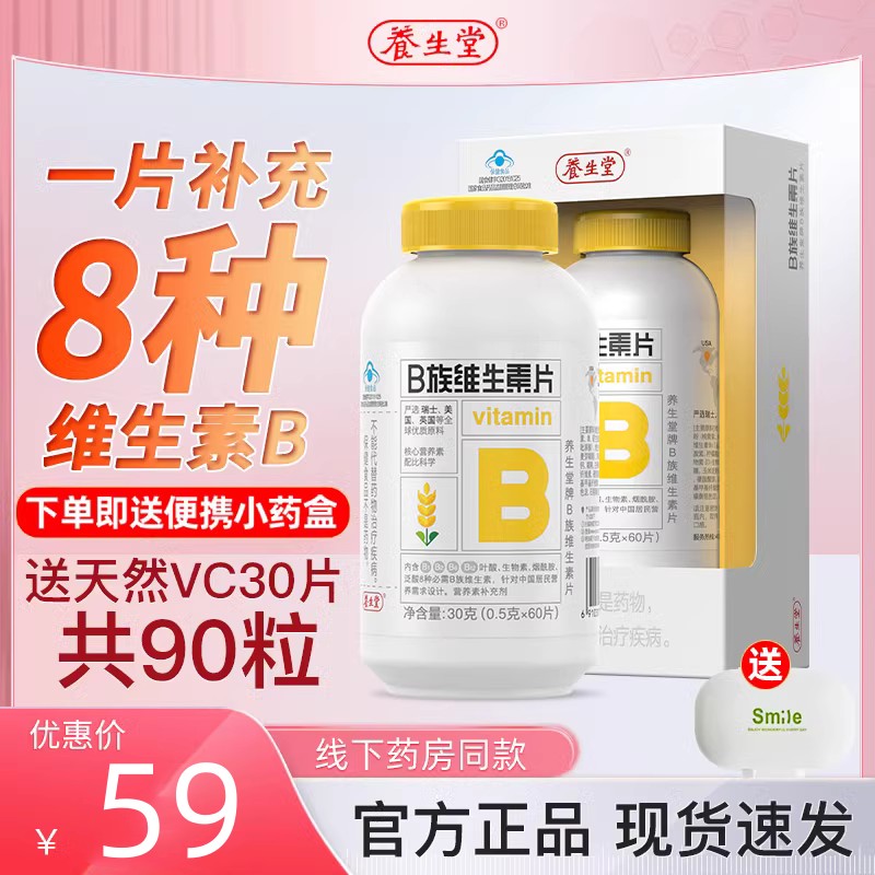 券 20元销量0养生堂维生素b族片复合vb族熬夜上火120片b1b2b6b12官方旗舰店