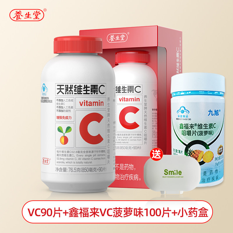 券 10元销量1090片养生堂天然维生素C咀嚼片正品维他命C含片VC女性维C成人儿童