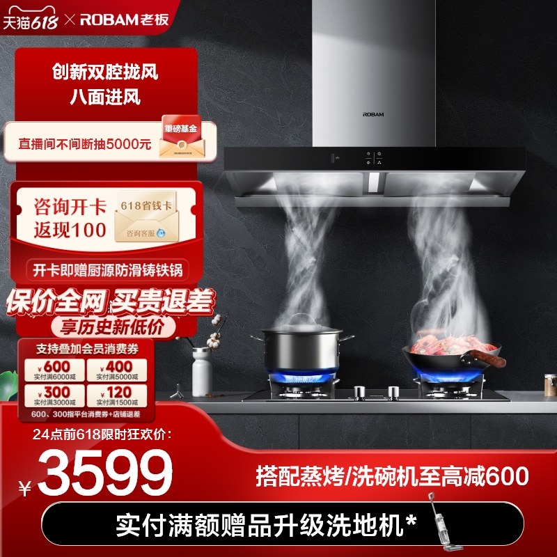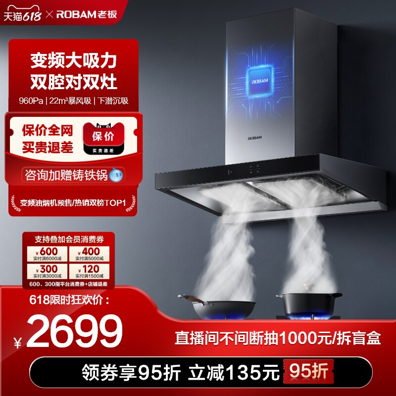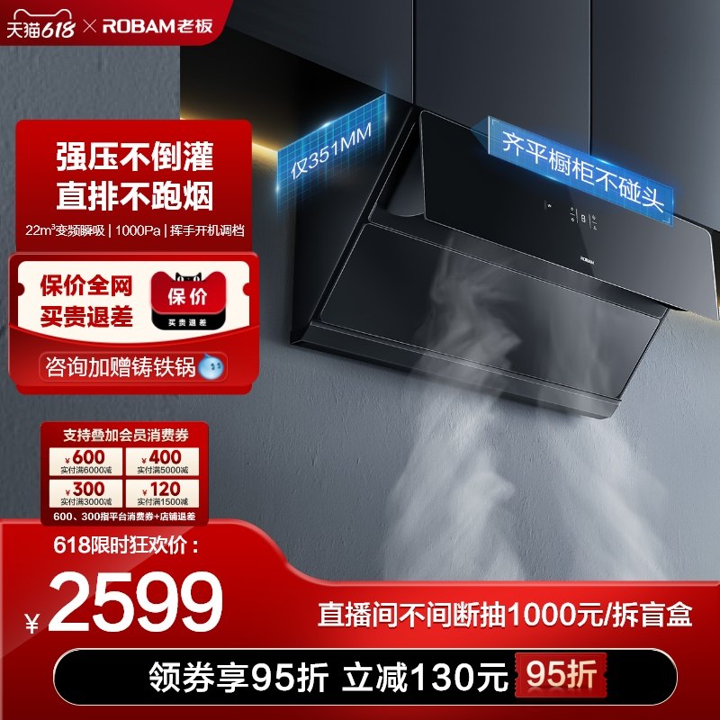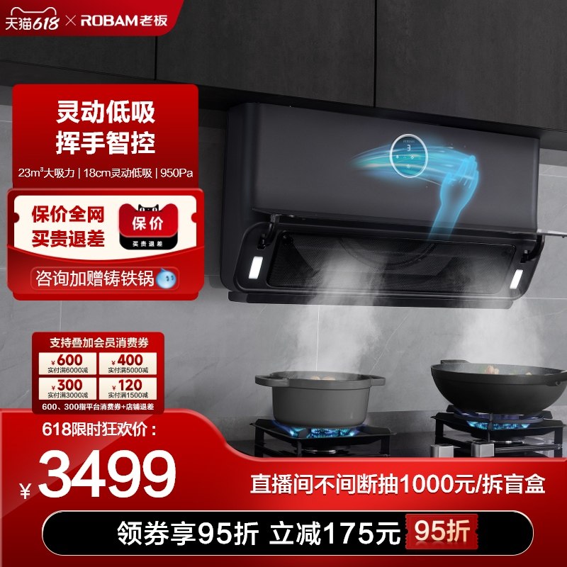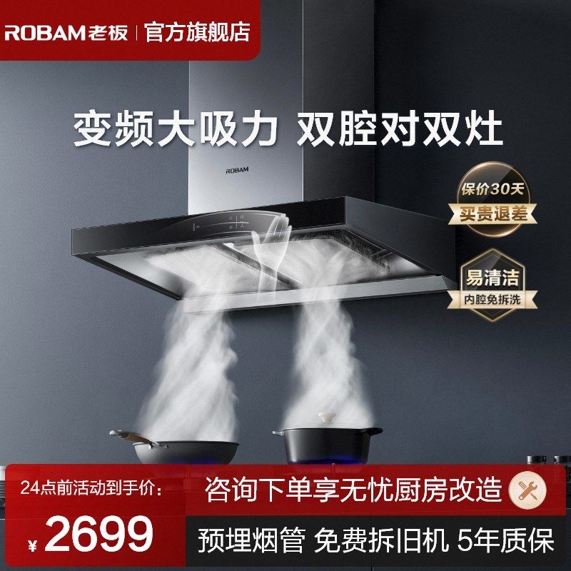 券 130元销量500[领航家MAX]老板官方旗舰店欧式家用变频双腔油烟机60X6S抽油烟机