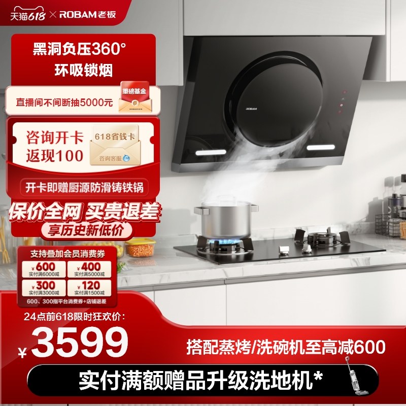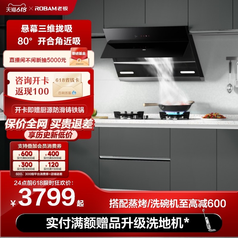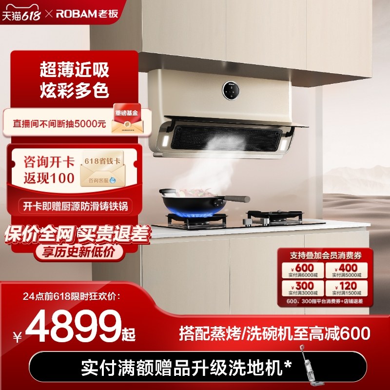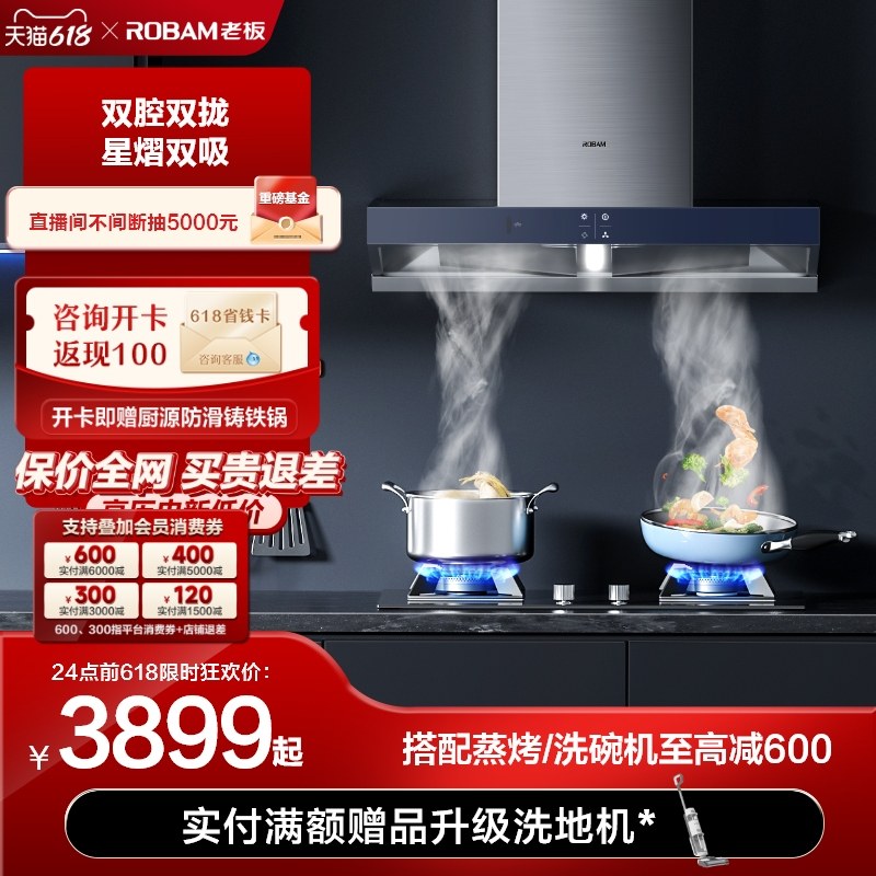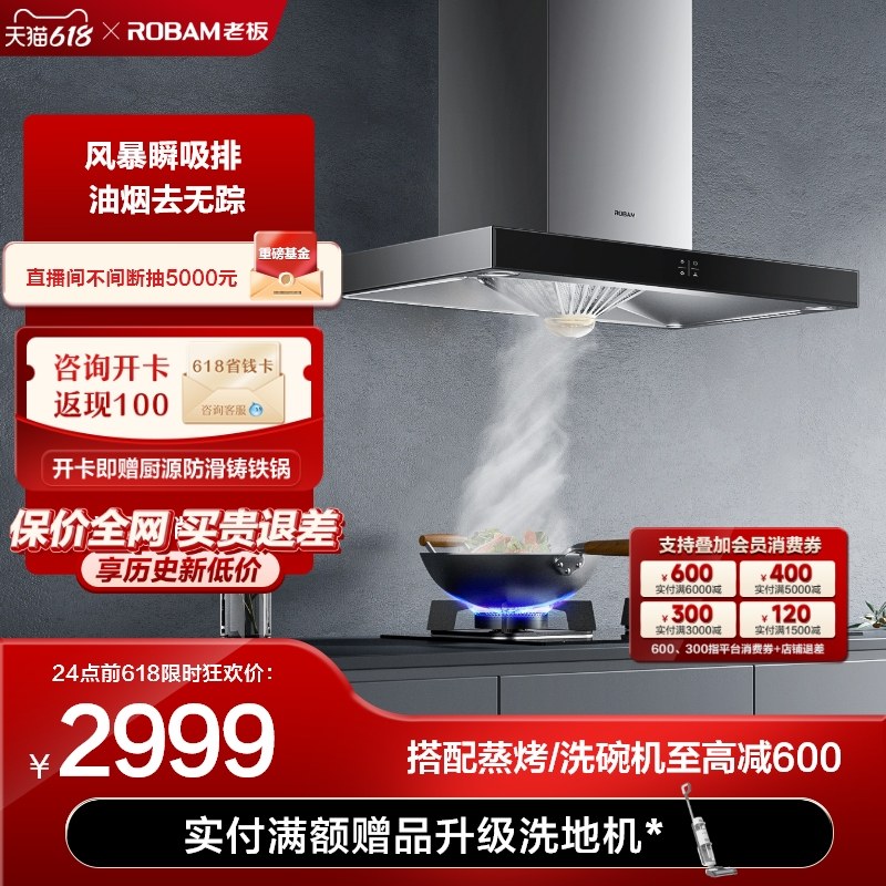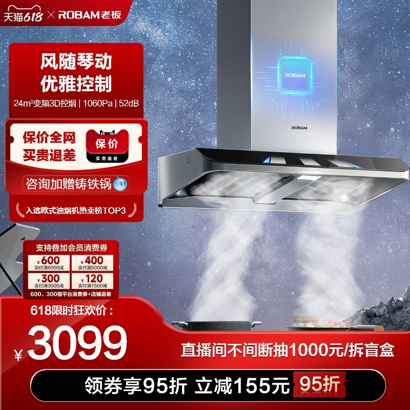 券 130元销量500[领航家MAX]老板官方旗舰店欧式家用变频双腔油烟机60X6S抽油烟机
