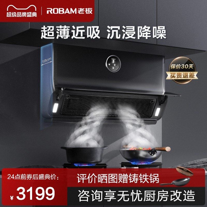 券 200元销量300[王一博同款]老板官方旗舰超薄近吸家用抽油烟机燃气灶套装23A0S