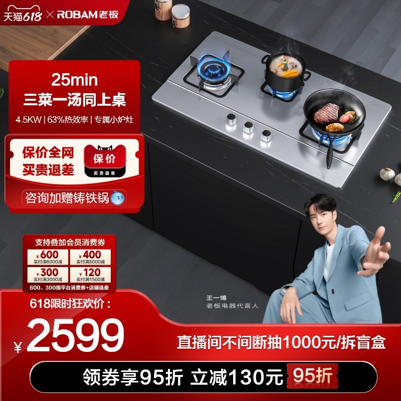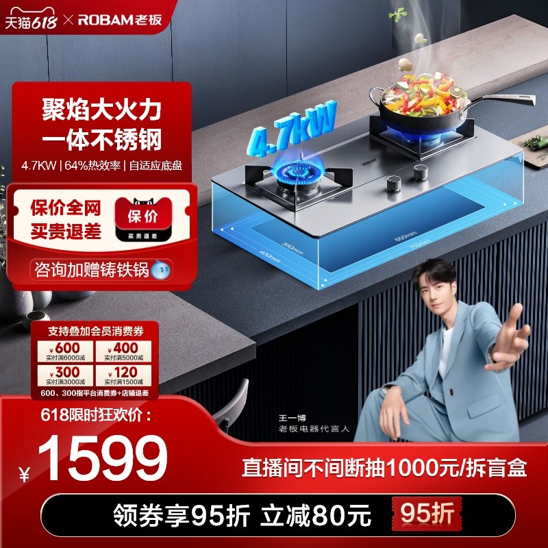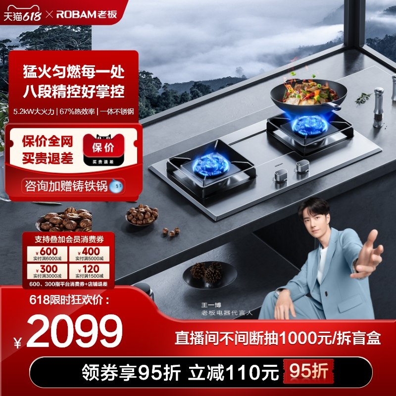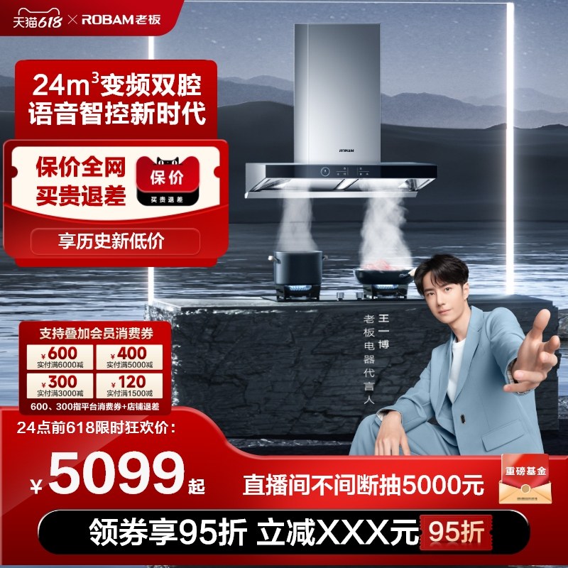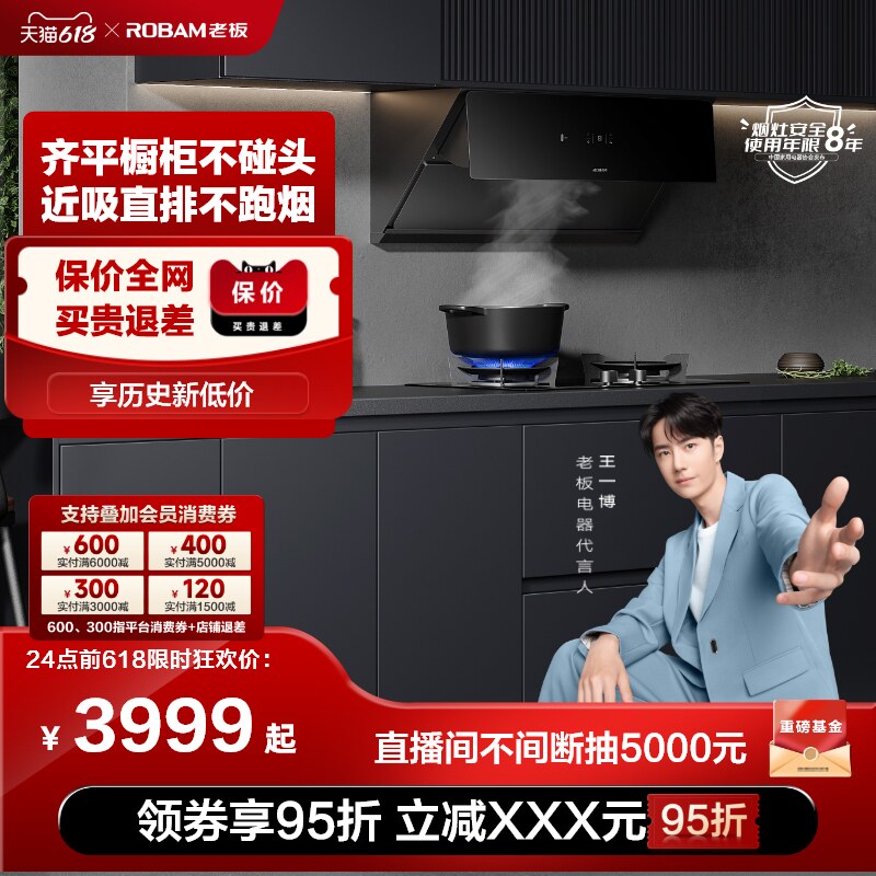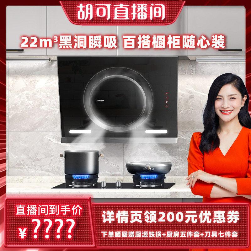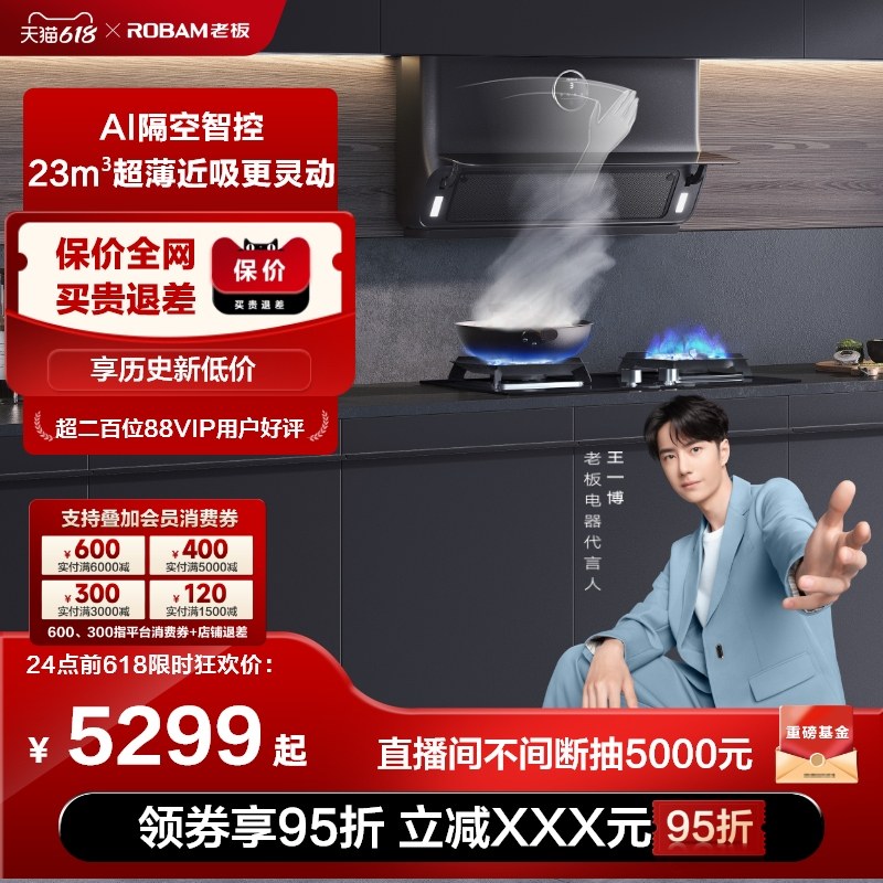 券 300元销量50[王一博同款]老板官方旗舰超薄近吸家用抽油烟机燃气灶套装23A0S
