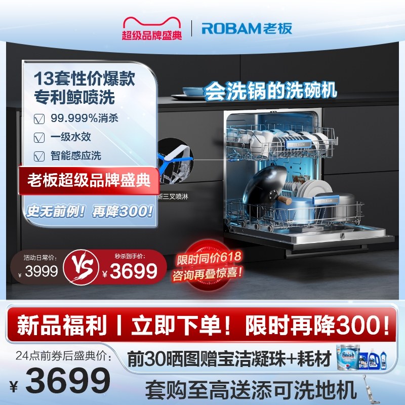 券 120元销量50老板13套洗碗机全自动家用会洗锅嵌入式消毒除菌变频烘干WB792X